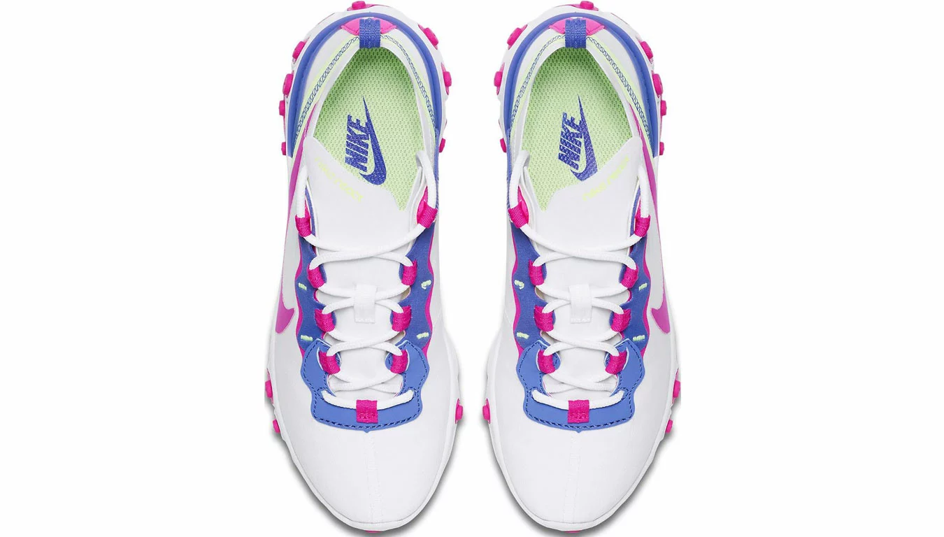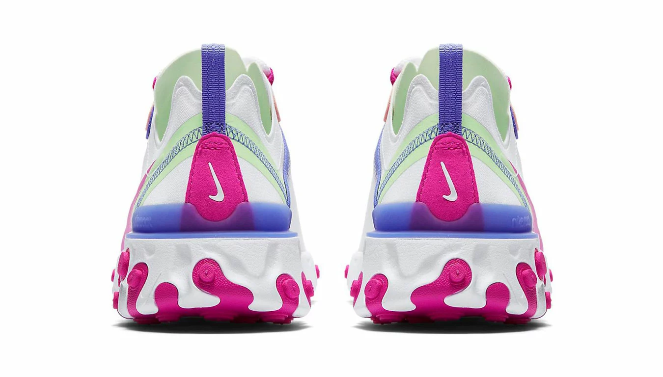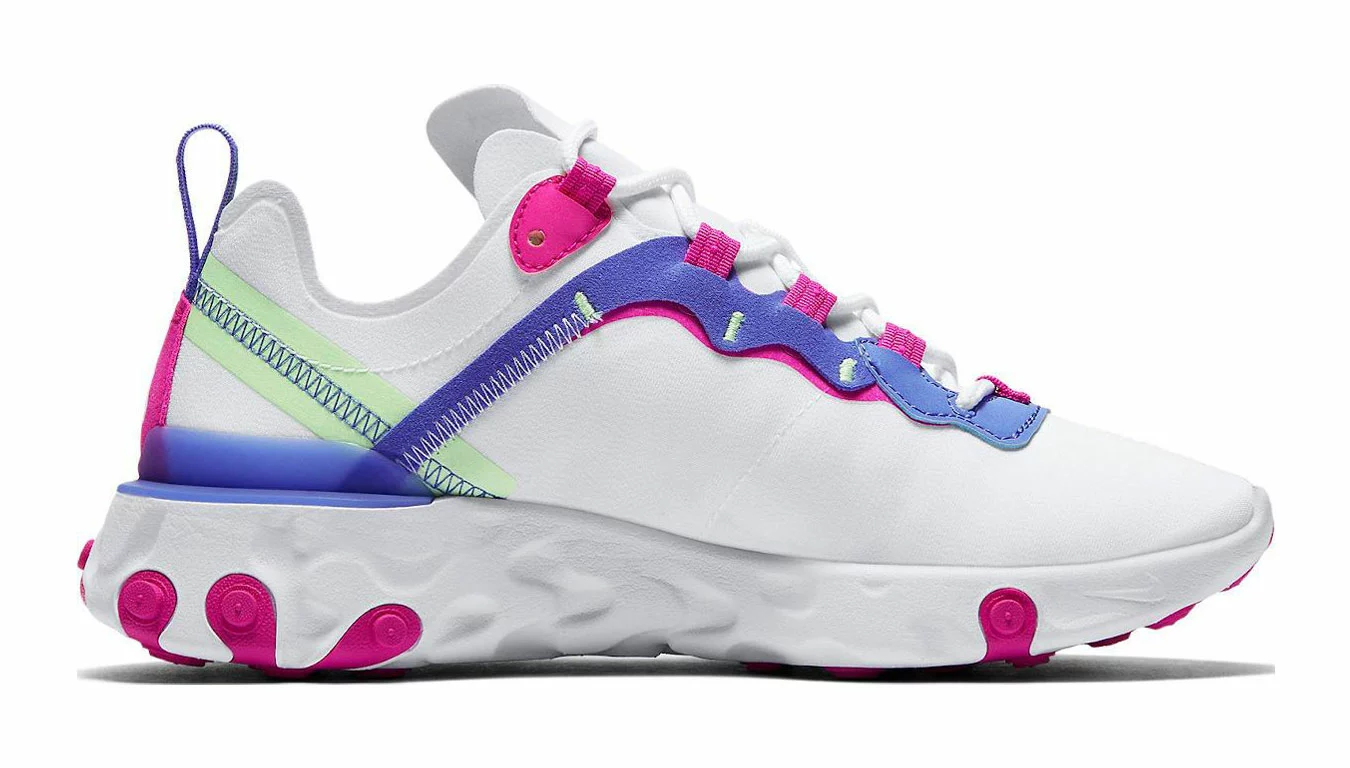 La Nike React Element 55 emprunte les lignes de design des coureurs Nike traditionnels comme l’Internationalist, puis place le tout sur la technologie Nike React.