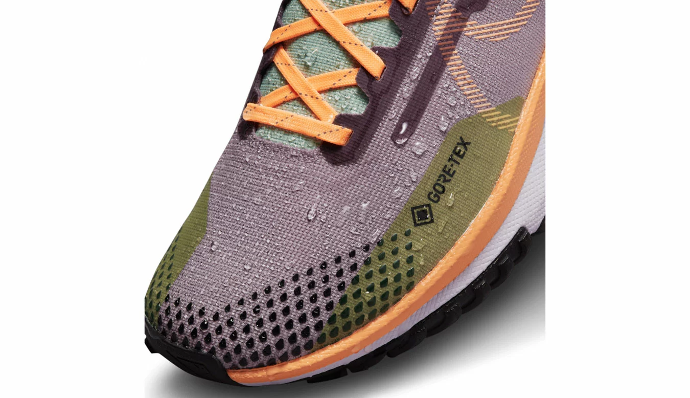 Une couche GORE-TEX aide à garder l’eau à l’extérieur pour que vos pieds restent au sec. La toute nouvelle guêtre au col est plus haute pour empêcher les débris et l’eau de pénétrer à l’intérieur de votre chaussure. La coupe invisible de GORE-TEX le long de la tige offre une protection contre les précipitations sans sacrifier la sensation de confort du Peg Trail. Sa conception flexible et légère garde votre pied au sec lorsque vous courez entre les routes et les sentiers mouillés.
