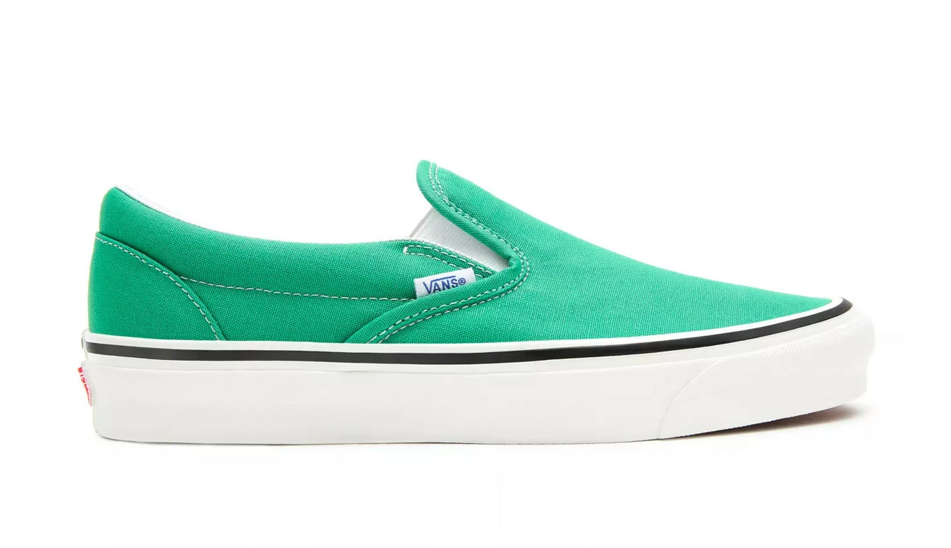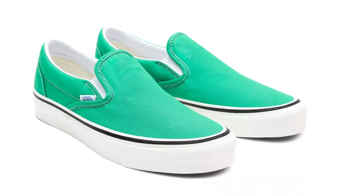 L’Anaheim Factory Classic Slip-On 98 DX comprend également des détails rétro comme le numéro de style et la palette de couleurs d’origine ou des imprimés réédités, une bande de renfort plus brillante, un poids de doublure en foret d’origine et des tiges en textile robustes pour compléter le look.