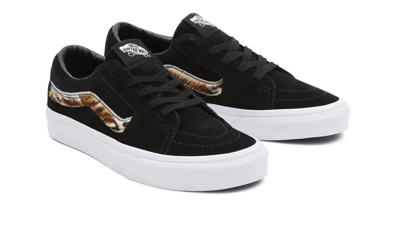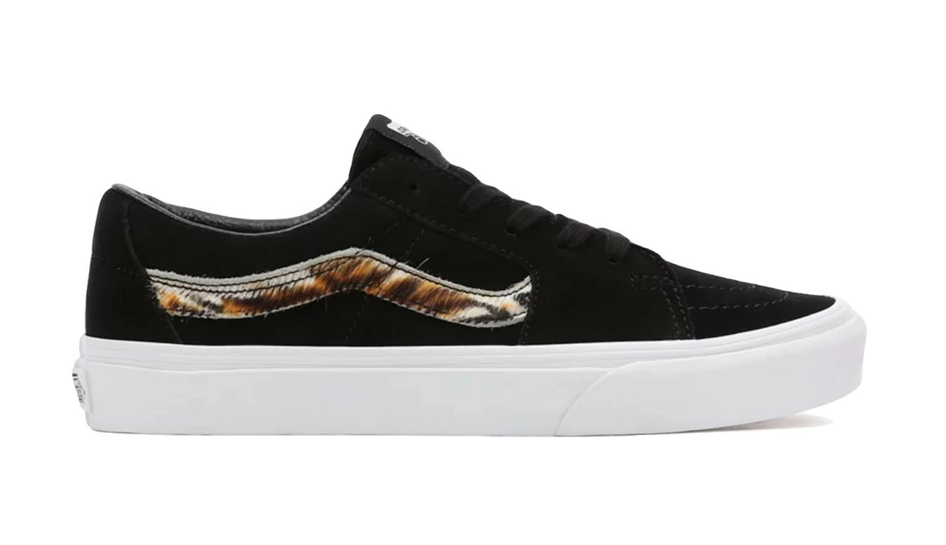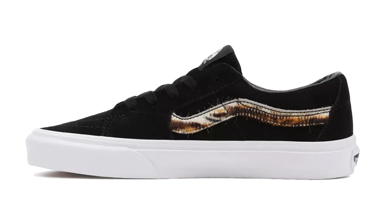 La Soft Suede Sk8-Low, une déclinaison de la légendaire chaussure montante Vans, est dotée d’une tige en daim doux et de bandes latérales à imprimé tigre. Apportant une esthétique Sk8-Hi familière à une silhouette basse classique, cette chaussure à lacets reflète également son homologue plus haute avec des embouts renforcés, des cols rembourrés de soutien et des semelles extérieures gaufrées en caoutchouc emblématiques.