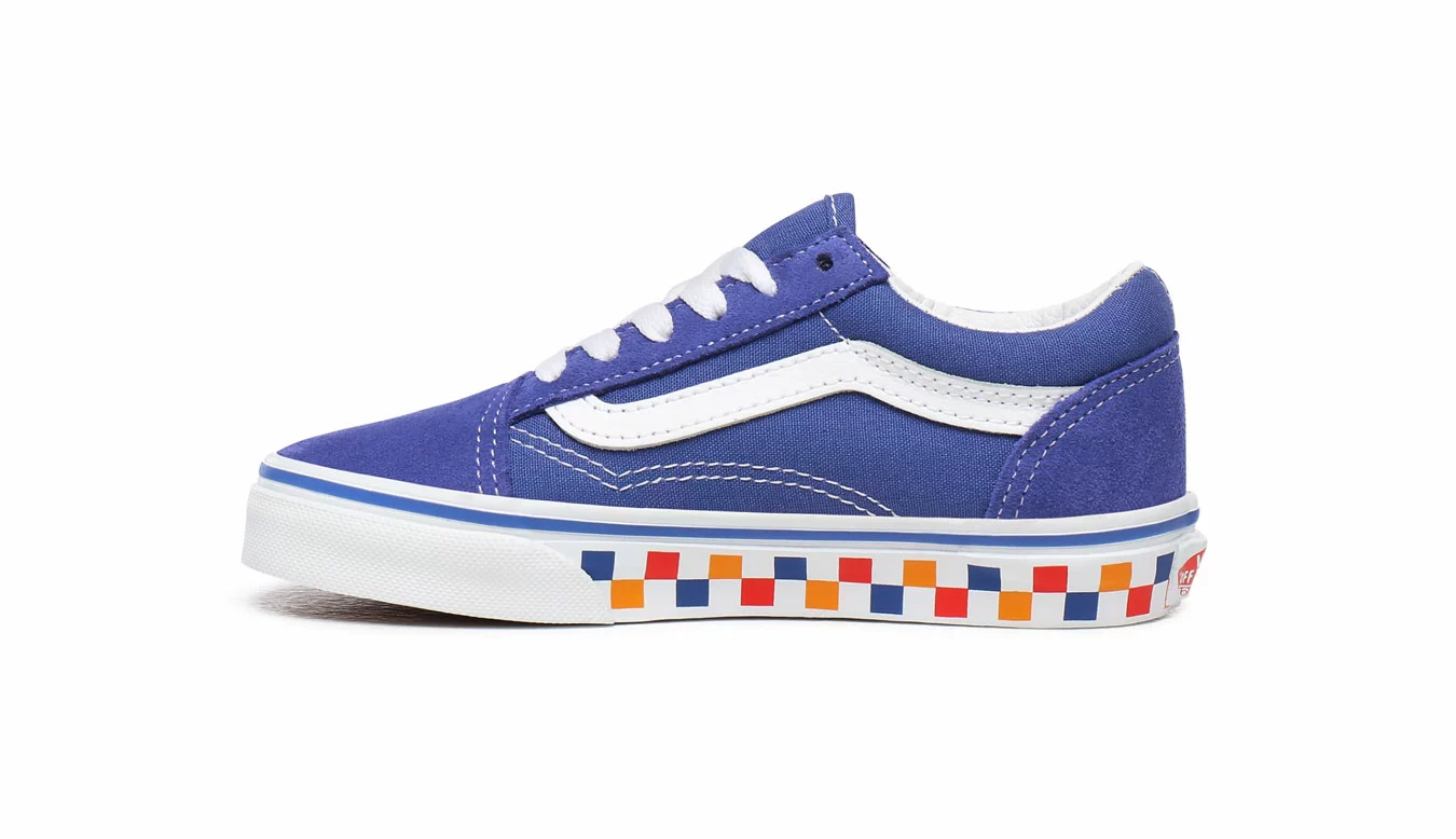 PremiĂšre Ă arborer la bande latĂ©rale emblĂ©matique, la Vans Kids Tri Checkerboard Old Skool est une chaussure basse Ă lacets. Il est doublĂ©, a des cols rembourrĂ©s pour plus de confort, des embouts renforcĂ©s pour rĂ©sister Ă l’usure rĂ©pĂ©tĂ©e et dispose de la semelle extĂ©rieure gaufrĂ©e signature Vans pour une adhĂ©rence plus ferme. Il a une impression de damier sur la semelle extĂ©rieure.
