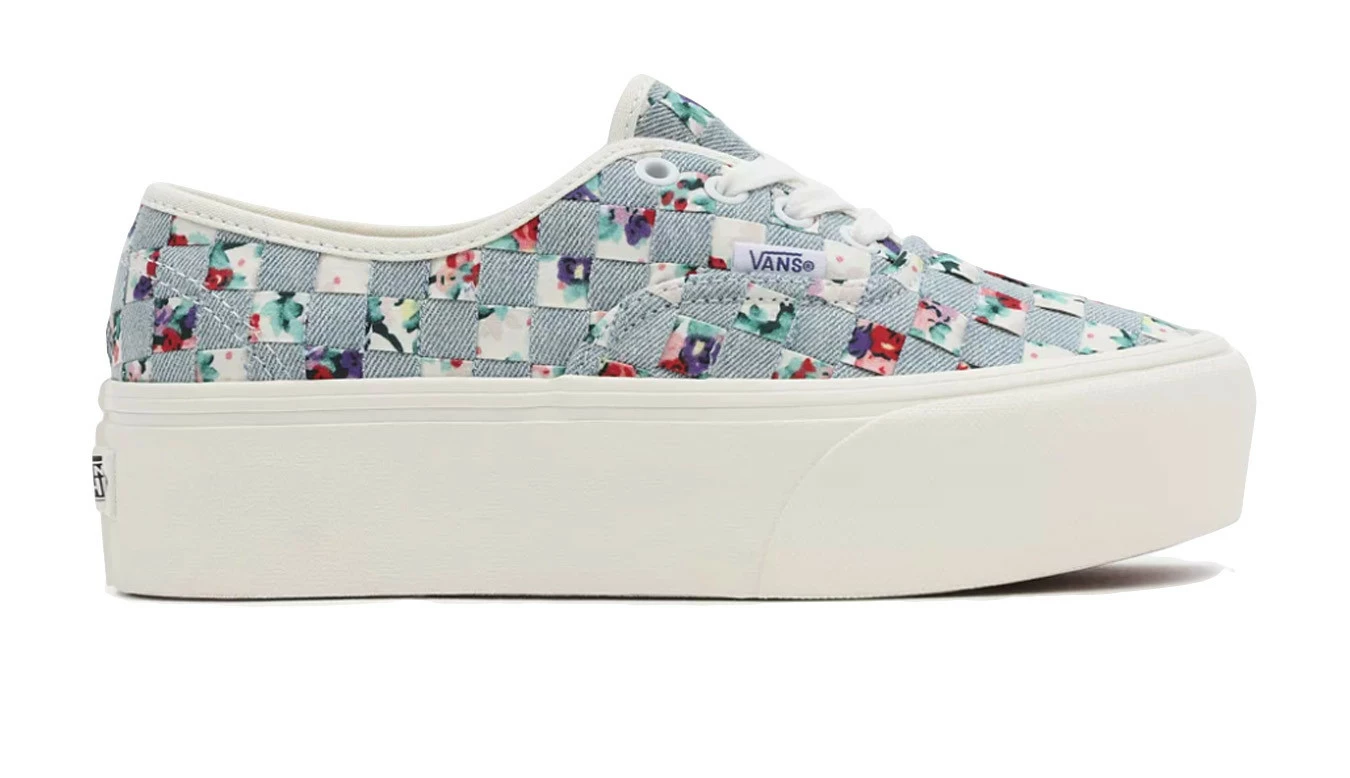 Les chaussures Woven Authentic Stackform rafraîchissent notre silhouette basse emblématique avec une version encore plus épaisse de l’esthétique de la plate-forme. Construite avec une hauteur de paroi latérale de 34 mm, cette chaussure à plateforme rehausse un favori classique tout en apportant un nouveau style « Off The Wall » à votre look. En plus d’un denim solide et d’une tige en tissu floral tissé dans un design en damier unique, le Woven Authentic Stackform est fini avec des œillets métalliques traditionnels et des semelles extérieures gaufrées en caoutchouc.