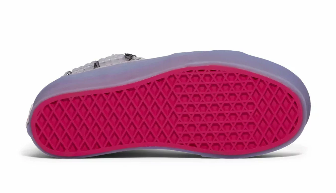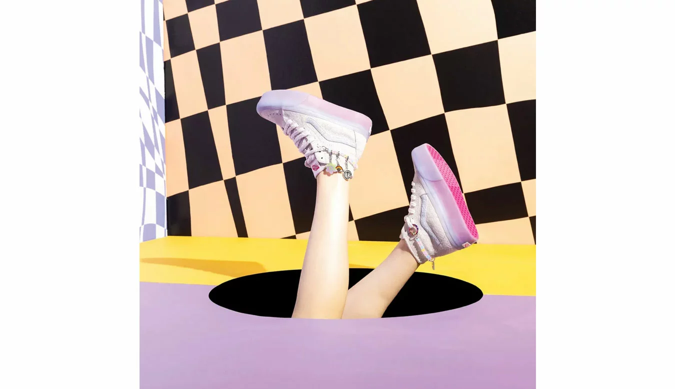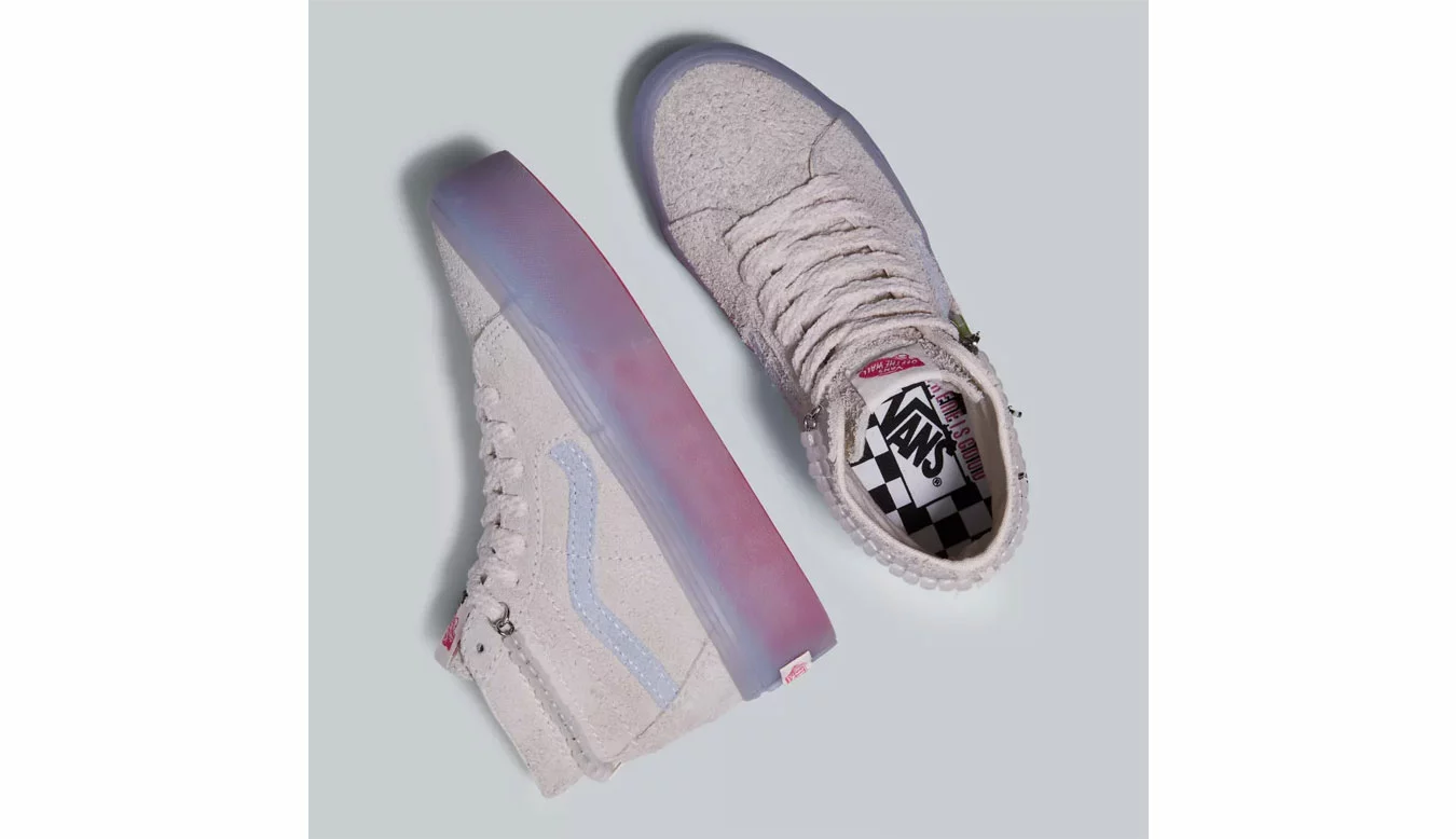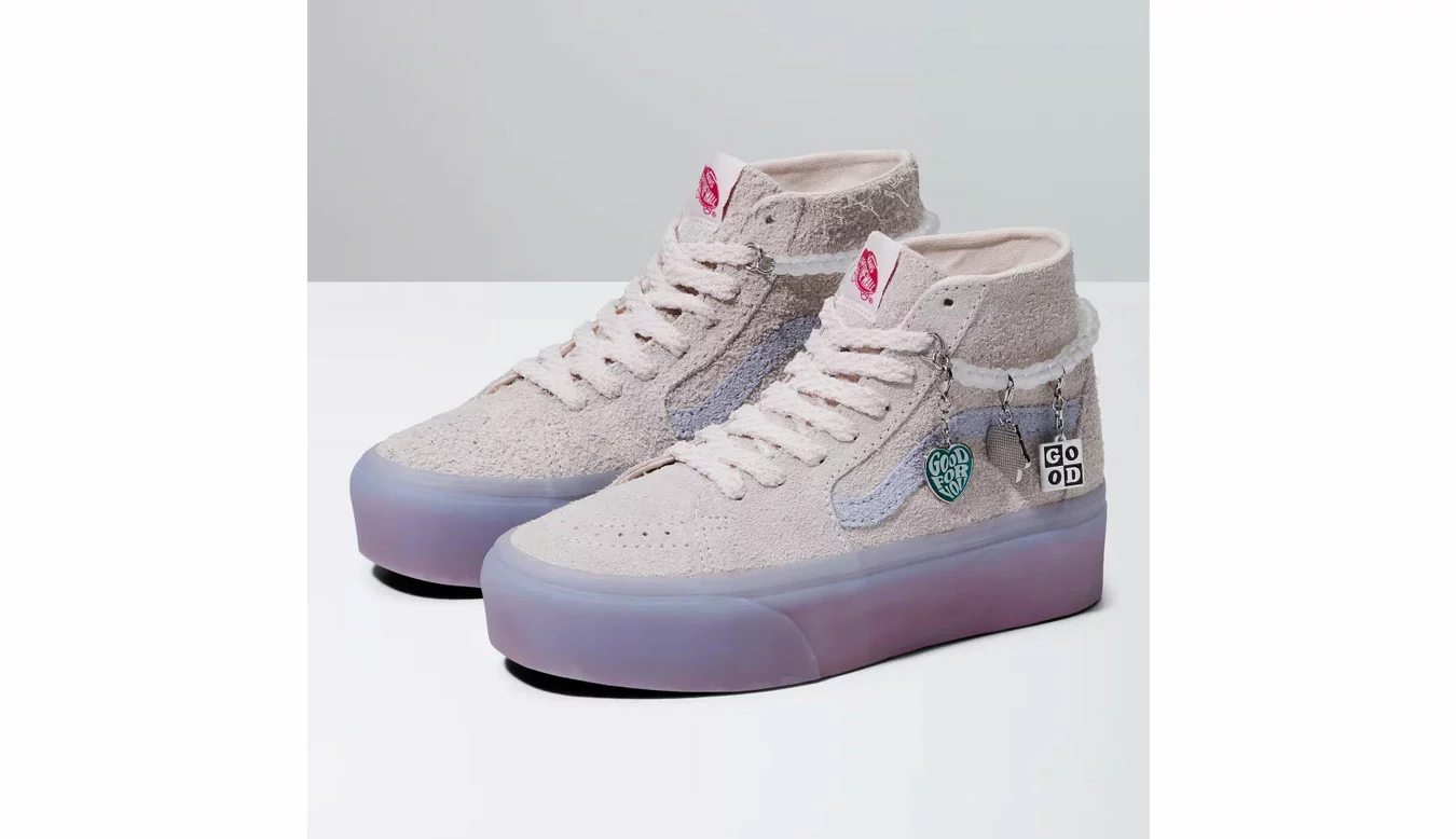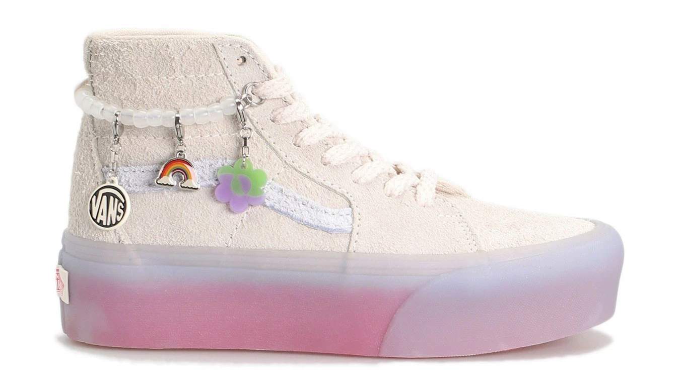 Inspiré par le mantra #goodforyou d’Irene Kim, le Vans x IRENEISGOOD Sk8-Hi Tapered Stackform utilise des graphismes ludiques, des couleurs vives et des matériaux uniques pour donner vie au monde imaginatif de positivité que représente la marque IRENEISGOOD. Les parois latérales épaisses de la plate-forme présentent des tons de sorbet brillants et les breloques pendantes autour des cols ajoutent une touche de fraîcheur à cette silhouette montante légendaire.